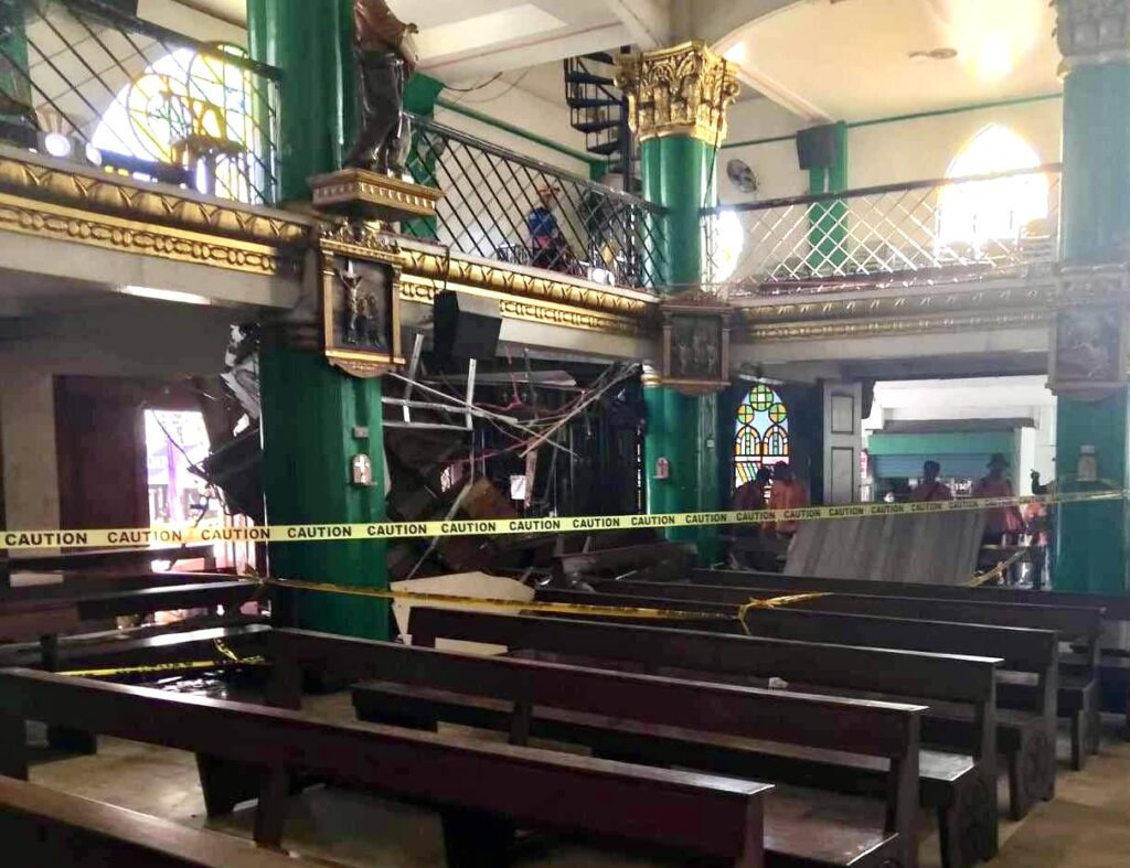The collapsed part of the balcony of St. Peter Parish Church in Barangay Tungkong Mangga, City of San Jose Del Monte, Bulacan where an 80-year old woman died and hurt over 50 more churchgoers during Holy Mass ceremony in celebration of Ash Wednesday and Valentine’s Day. PHOTOs from CITY INFORMATION OFFICE of City of SanJose Del Monte