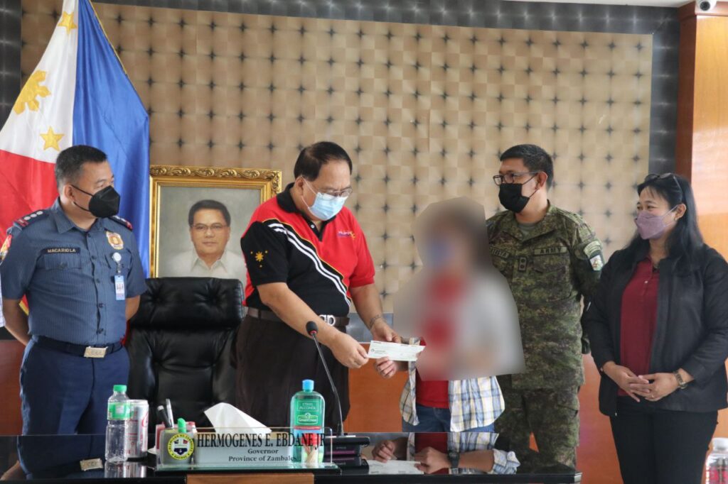 The distribution of financial assistance was led by Governor Hermogenes E. Ebdane Jr together with DILG Provincial Director Armi V. Bactad, Provincial Social Welfare and Development Officer Merle C. Pastor, Zambales Provicial Police Office (ZPPO) provincial director PCol Fitz A. Macariola, and Acting Commanding Officer ng 3rd Mechanized Infantry Battalion Lieutenant Colonel Jeszer M. Bautista.