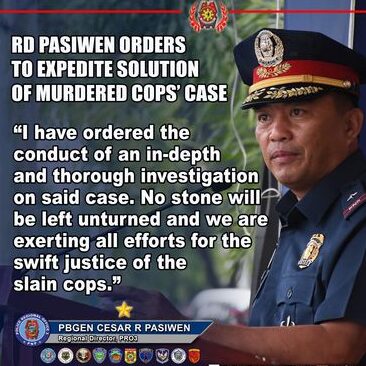 “No stone will be left unturned and authorities are exerting all efforts for the swift justice of the slain cops,” wika ni Pasiwen.