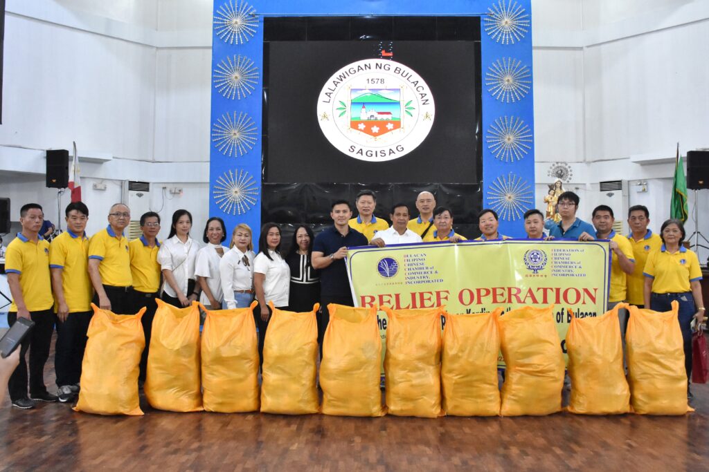 THE Bulacan Filipino Chinese Chamber of Commerce and Industry, Incorporated (BFCCCII) headed by President Arthur Chua Dy turns over 3,000 food packs to the Provincial Government of Bulacan through Gov. Daniel R. Fernando and Vice Gov. Alexis C. Castro during the Monday, Flag Ceremony (October 3, 2022) at the Bulacan Capitol Gymnasium, City of Malolos, Bulacan, which will be distributed to the Bulakenyo victims of Typhoon Karding. Also in the photo are (beside Castro) Provincial Administrator Antonia V. Constantino, Provincial Social Welfare and Development Office Head Rowena J. Tiongson and former BFCCCII president Lily Domingo (far right).