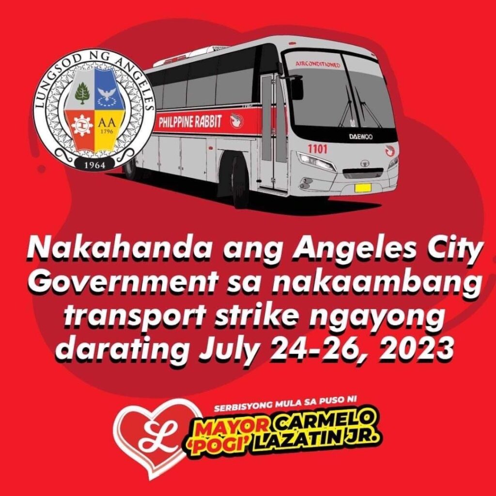 Mayor Lazatin said five Philippine Rabbit buses will be readied in strategic areas in Angeles City to ferry the riding public for free in case of a transport strike.