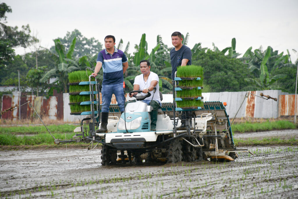 Governor Daniel R. Fernando (center) operates and drives the mechanical rice transplanter (riding type) which raises the efficiency of farm operations as well as lowers production costs during the Demonstration for Agricultural Drone Activity held in Elizabeth Esguerra’s Farm in Brgy. Pinac-pinacan, San Rafael, Bulacan last Tuesday. With him are (far left) San Rafael Mayor Mark Cholo I. Violago and (far right) Board Member Romeo V. Castro, Jr.