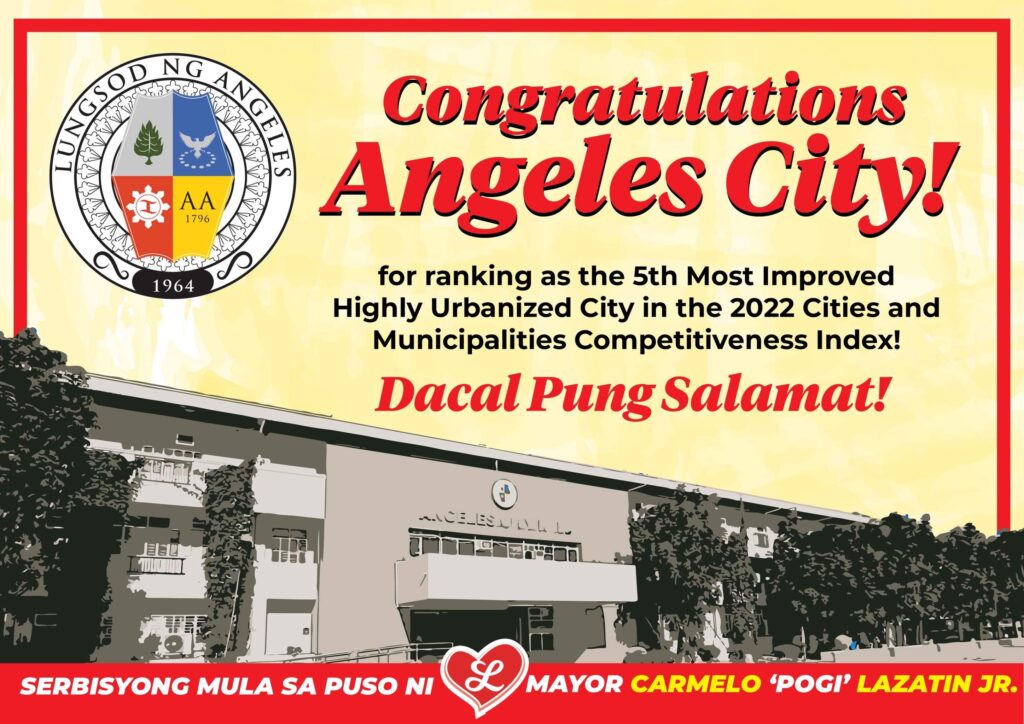 THE city government here under the leadership of Mayor Carmelo “Pogi” Lazatin, Jr. was cited by the Department of Trade & Industry for its exemplary performance in the 2022 Cities and Municipalities Competitiveness Index (CMCI).