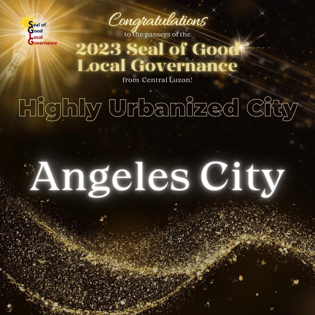 The Angeles City Government gets the Seal of Good Local Governance (SGLG) conferred by the Department of the Interior and Local Government for the first time under the leadership of Mayor Carmelo ‘Pogi’ Lazatin Jr.