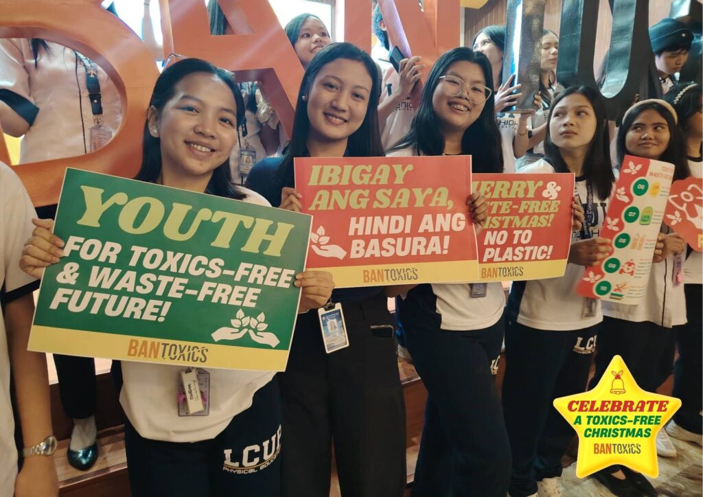 Malolos City, Bulacan – Environmental justice group BAN Toxics, together with hundreds of students, parents, and teachers of La Consolacion University Philippines (LCUP), held an environmental awareness event to encourage the public to celebrate a toxics-free, zero-waste Christmas. Now in its third year of implementation in schools, the initiative continues to reinforce the call for safer and more sustainable holiday celebrations.