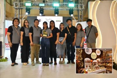 BEST KASALAN AT OKASYON BOOTH. Officers of Bulacan Events Suppliers Association (BESA) headed by BESA President Josephine Murillo-Cruz (2nd from right) and BESA Chairman Mona Richelle Bumanlag (far left) award the trophy to Regine R. Royo of Art to Inspire (SATI) for being hailed as the Best Booth at the Kasalan at Okasyon Bridal Fair and Exhibit Year 9 at Robinsons Malolos, City of Malolos, Bulacan last September 5-7, 2025. Inset: The Art to Inspire (SATI) booth adorned with their products and souvenirs.