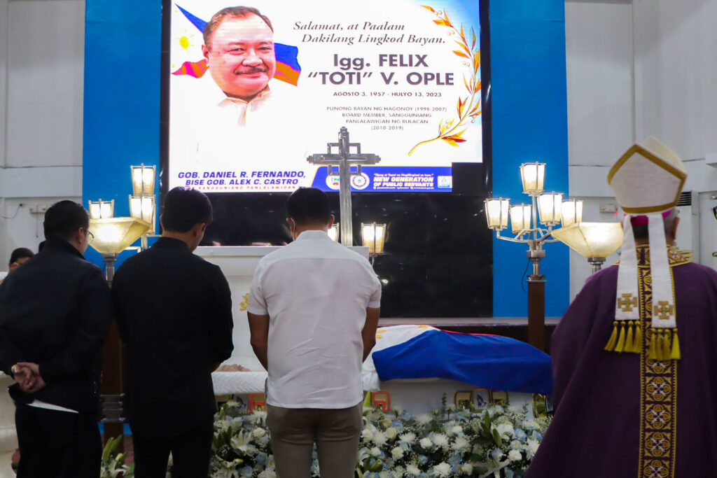 LUNGSOD NG MALOLOS- Inalala ng mga dati at nakaluklok na lokal na opisyal ng lalawigan sa pangunguna ni Gob. Daniel R. Fernando ang simple at payak na buhay at pinarangalan ang legasiya ng dating Punong Bayan ng Hagonoy at Bokal Felix Magdiwang “Toti” V. Ople sa isang luksang parangal sa Bulacan Capitol Gymnasium sa lungsod na ito kahapon.