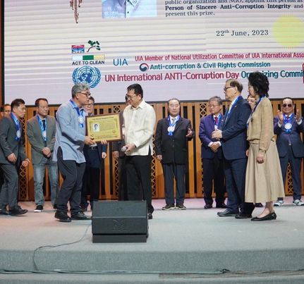 CIBAC Rep. Bro Eddie Villanueva receives World Integrity Award from South Korea-based anti-corruption group on January 14, 2024.