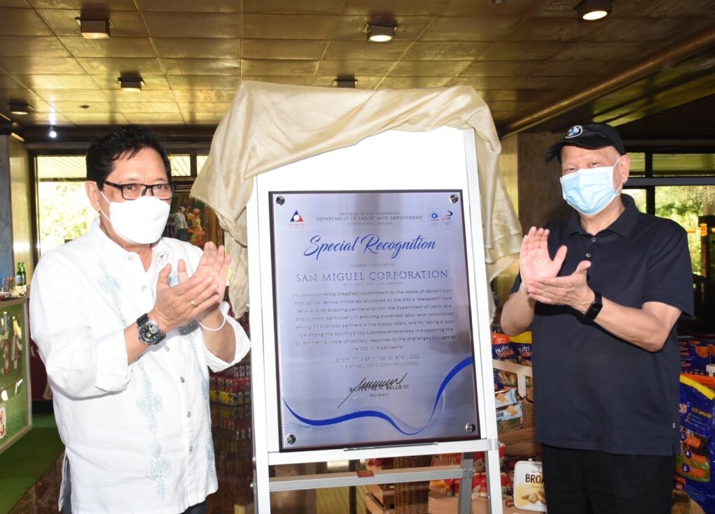 DOLE Secretary Silvestre Bello III cited SMC for its continuous and sincere efforts to help Filipino employees and workers, particularly throughout the difficult pandemic period, even as the economy and business have yet to fully recover.