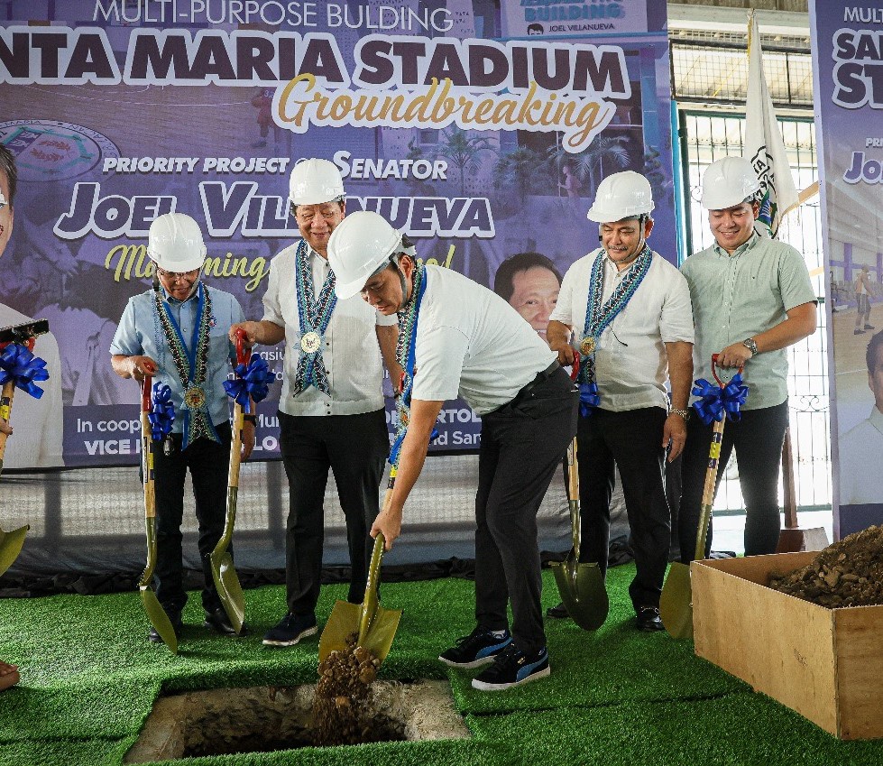 Senate Majority Leader Joel Villanueva together with officials from Public Works and Highways Region 3, and local government unit of Municipality of Santa Maria led the groundbreaking and capsule laying ceremony for the construction of an P80-million stadium in Santa Maria, Bulacan on Monday, October 2, 2023.
