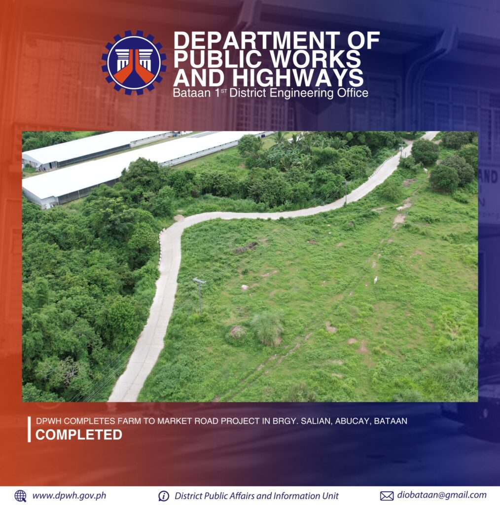 The Department of Public Works and Highways reported the completion of a farm-to-market road (FMR) project in Brgy. Salian, Abucay, Bataan.