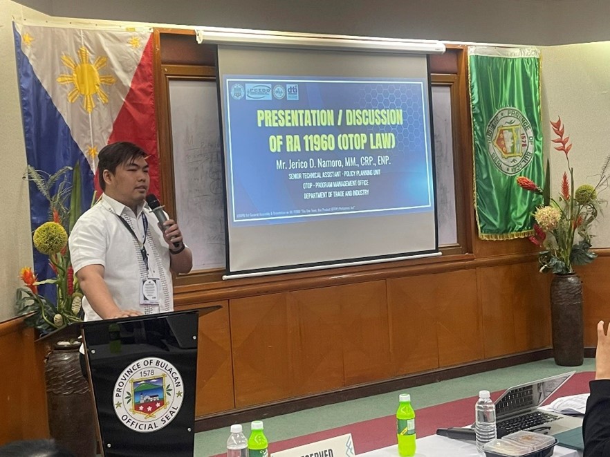 The Department of Trade and Industry-Bulacan Provincial Office held a Provincial Orientation on R.A. 11960, known as the “OTOP (One Town, One Product) Philippines Act” on February 22, 2024 at the Hiyas ng Bulacan Convention Center in the City of Malolos, Bulacan.