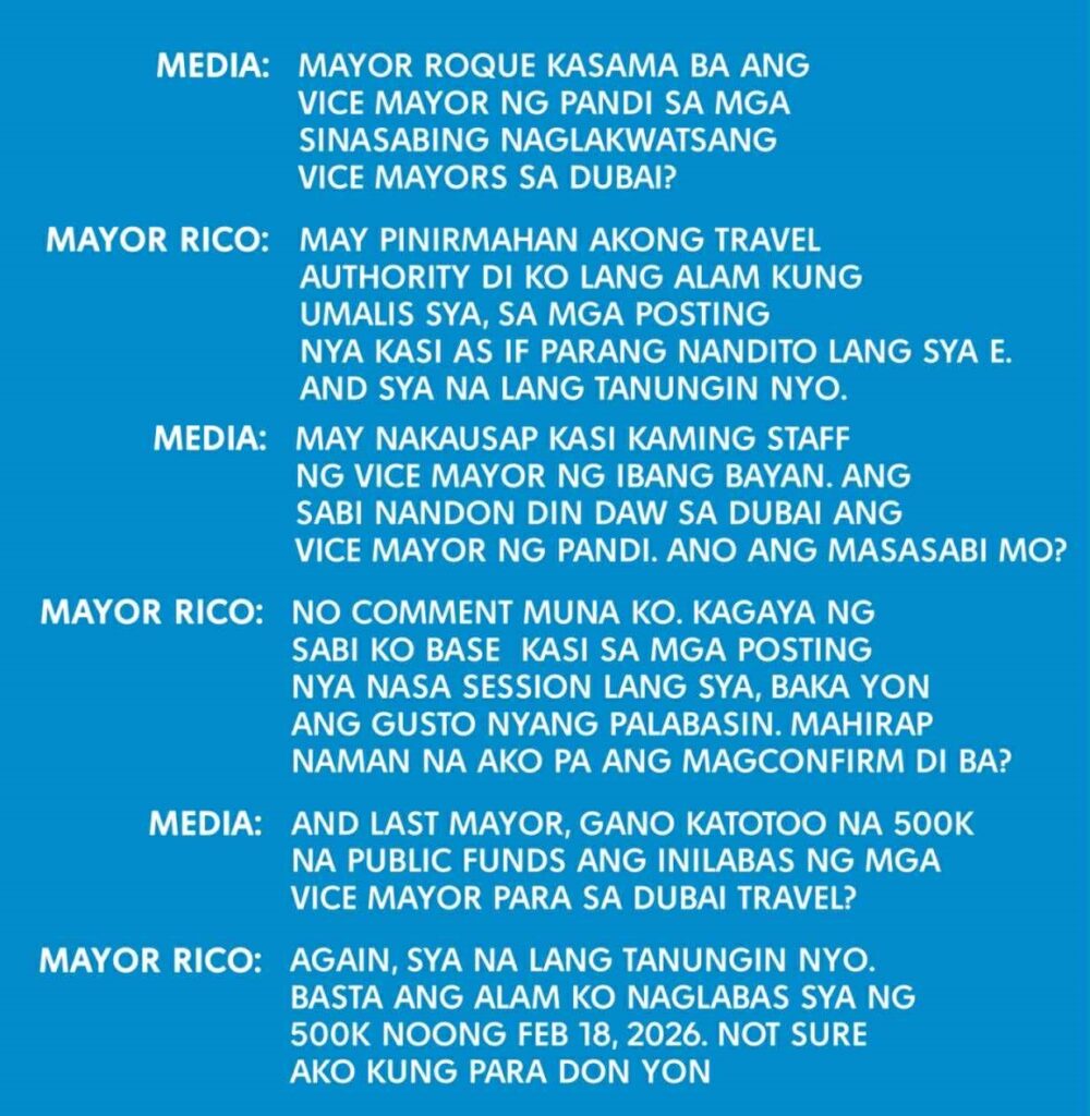 Base pa sa panayam, tinanong ang alkalde kung totoo na naglabas ng P500K na public funds ang mga vice mayor para sa naturang Dubai travel na kinumpirma ng alkalde  na naglabas si Castro ng P500K.