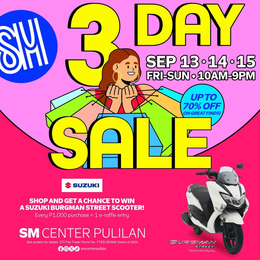Head on to an early holiday shopping spree as SM Center Pulilan throws the biggest 3-DAY SALE happening on September 13, 14, and 15.