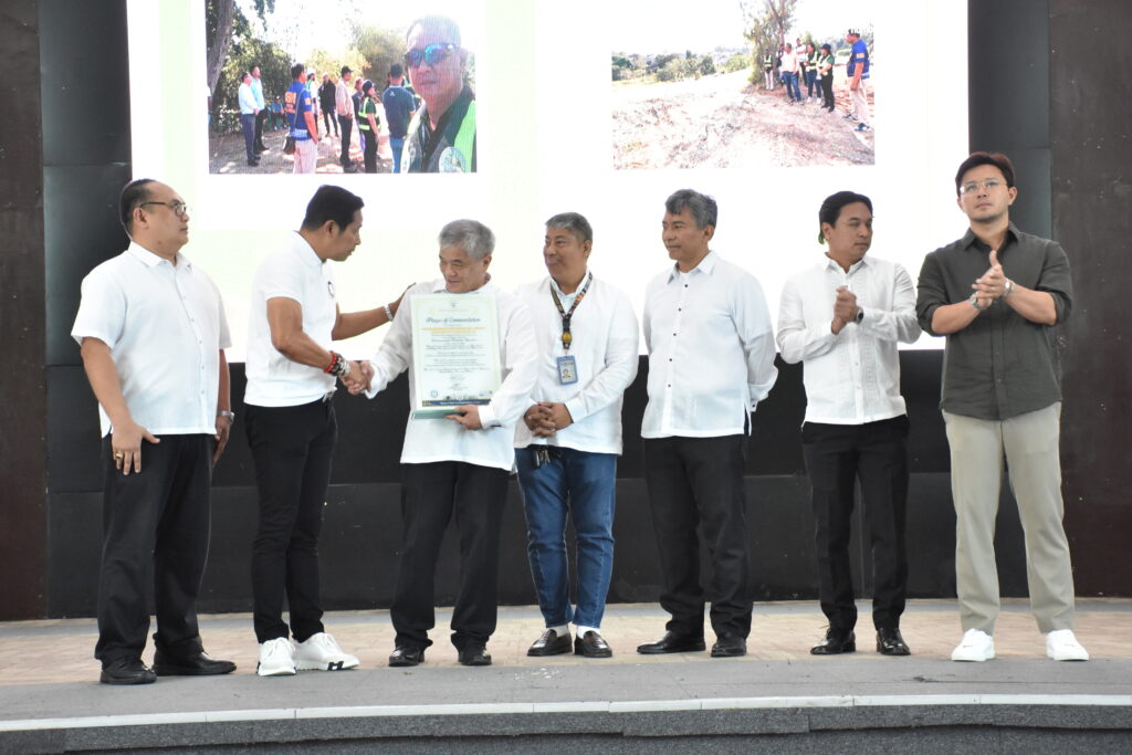 JOB WELL DONE. Bulacan Governor Daniel R. Fernando awards the Plaque of Commendation to Head Agent Julio T. Cajigan, Jr. of the National Bureau of Investigation – Bulacan District Office during the Monday Flag Ceremony held at The Pavilion in Hiyas ng Bulacan Convention Center, City of Malolos, Bulacan in recognition of their vital role in the recently conducted Environmental Protection Operation with the Bulacan Environmental and Natural Resources Office at the City of San Jose Del Monte, Bulacan. Also in the photo are (R-L) Vice Governor Alexis C. Castro, NBI Senior Agent Isriel Mark O. Dayrit, Supervising Agent Oliver D. Baisa-EXO, Supervising Agent Rudthen M. Mendoza, and BENRO Head Atty. Julius Victor C. Degala.
