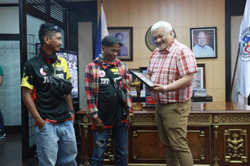 Angeles City Mayor Carmelo ‘Pogi’ Lazatin Jr. on January 31, 2024 awards a Certificate of Commendation to Angelito Cunanan, a member of Jaoville Pandan Tricycle Operators and Drivers Association, for his deed of honesty by returning a mobile phone to its rightful owner. The city government rewarded Cunanan with a cash incentive worth ₱5,000 for his honesty.