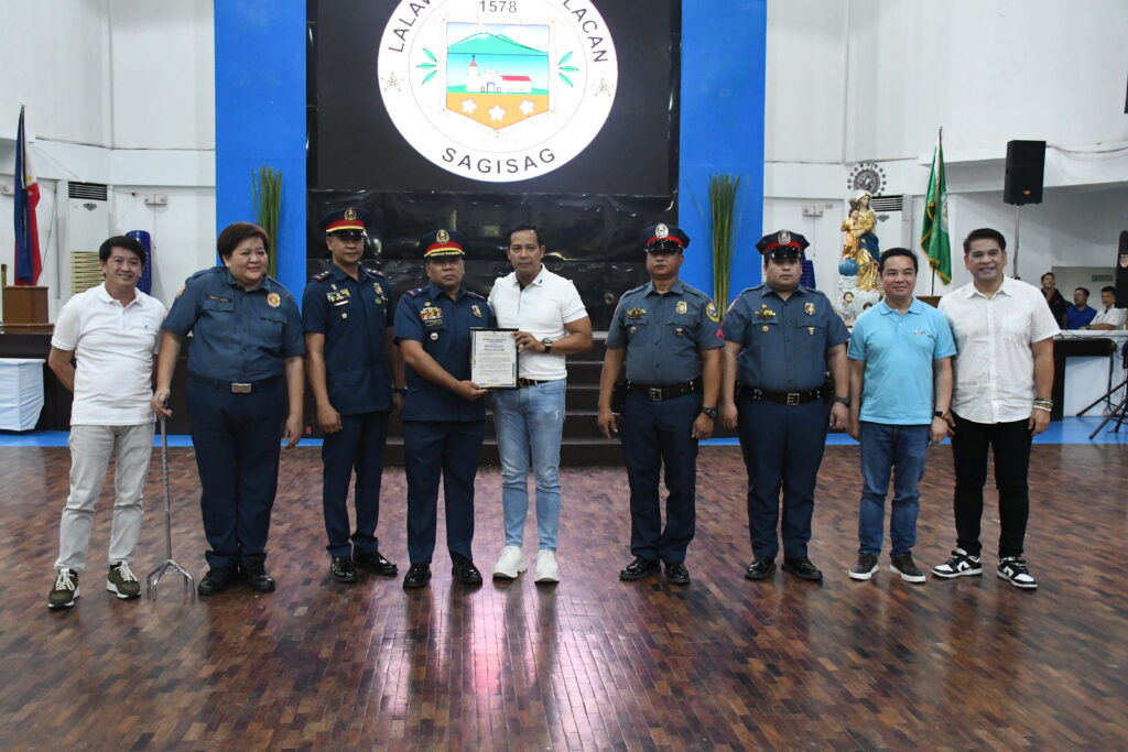 Governor Daniel R. Fernando awards the certificate of commendation and appreciation to Malolos City Police headed by PMAJ Erickson Miranda during the Monday Flag Ceremony held at Bulacan Capitol Gymnasium, City of Malolos, Bulacan for capturing the Top 1 Most Wanted Person of City of Malolos and for their unwavering commitment to serve justice to the victims of crimes. Also in the photo are Board Members Richard Roque, Allan Andan and Cezar L. Mendoza.