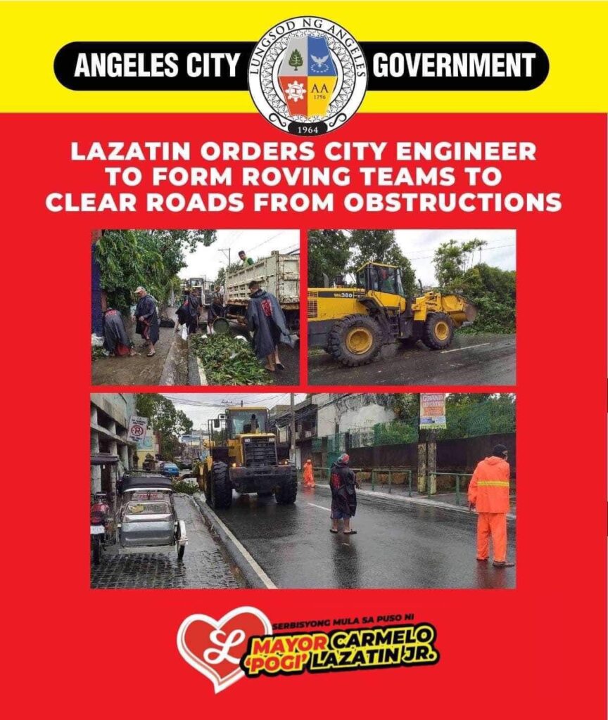 ANGELES CITY — Mayor Carmelo “Pogi” Lazatin, Jr. has ordered the City Engineer’s Officer-in-Charge Helen Ayro to form roving teams to immediately clear roads from obstructions.