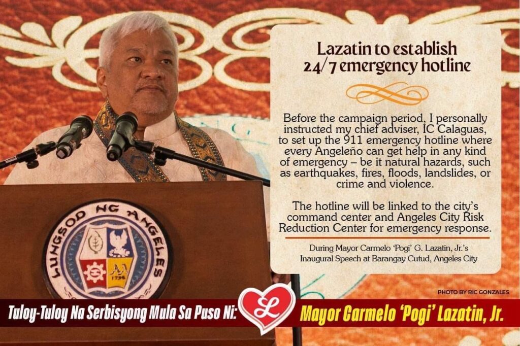 ANGELES CITY — Mayor Carmelo “Pogi” Lazatin, Jr. said the city will soon have a 24/7 emergency hotline.