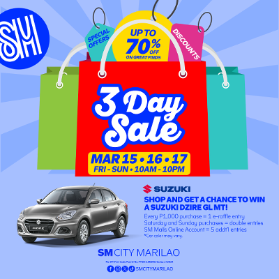 Nothing compares to the excitement SM City Marilao has to offer as the mall rolls out the biggest 3-Day Sale happening on March 15-17.