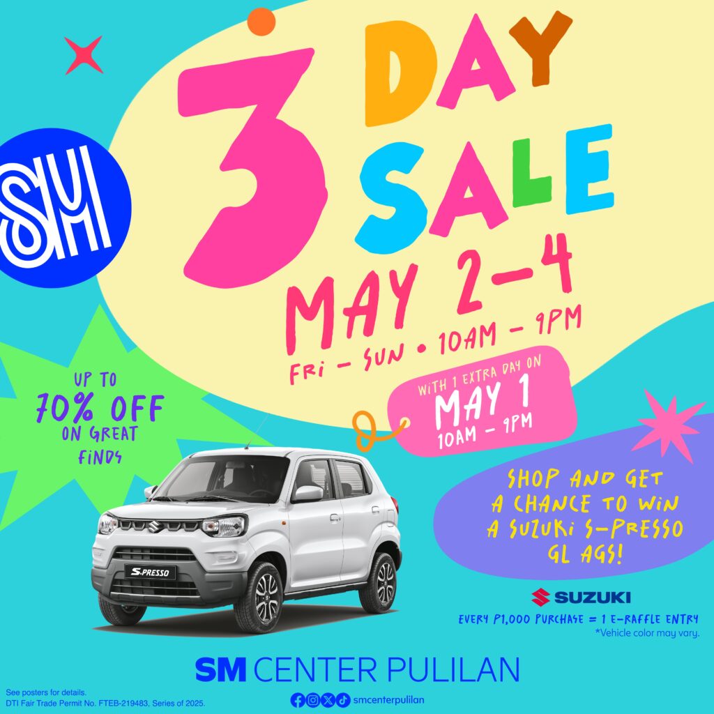What if we told you your long Labor Day weekend just got more rewarding—with irresistible discounts? SM Center Pulilan is taking shopping to thrilling new heights by turning its much-awaited 3-Day Sale into a four-day shopping fiesta starting May 1. Yes, you read that right—Labor Day just became a shopaholic’s dream.