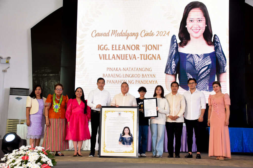LUNGSOD NG MALOLOS – Bunsod nang ipinamalas na kahanga-hangang pagpapakita ng dedikasyon sa serbisyo publiko, pinarangalan ng prestihiyosong titulo na “Pinaka Natatanging Babaeng Lingkod Bayan sa Panahon ng Pandemya” si dating Punong Bayan Eleanor ‘Joni’ Villanueva-Tugna sa ginanap na Gawad Medalyang Ginto 2024 sa The Pavilion sa Hiyas ng Bulacan Convention Center dito noong Martes, kung saan ipinagdiwang ang legasiya ni Tugna ay ipinagdiwang nang may karingalan at pagpapahalaga.