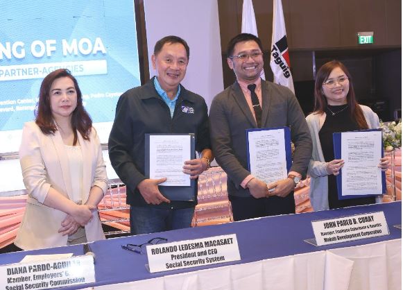 Other signatories to the agreement were SSS Executive Vice President for Branch Operations Sector Voltaire P. Agas, SSS Senior Vice President for National Capital Region Operations Group Maria Rita S. Aguja, MDC Vice President for Corporate Resources and Services Group Ferdie M. Mangali, and MDC Corporate Resources and Services Group Senior Division Head Jowel C. Alcasid.