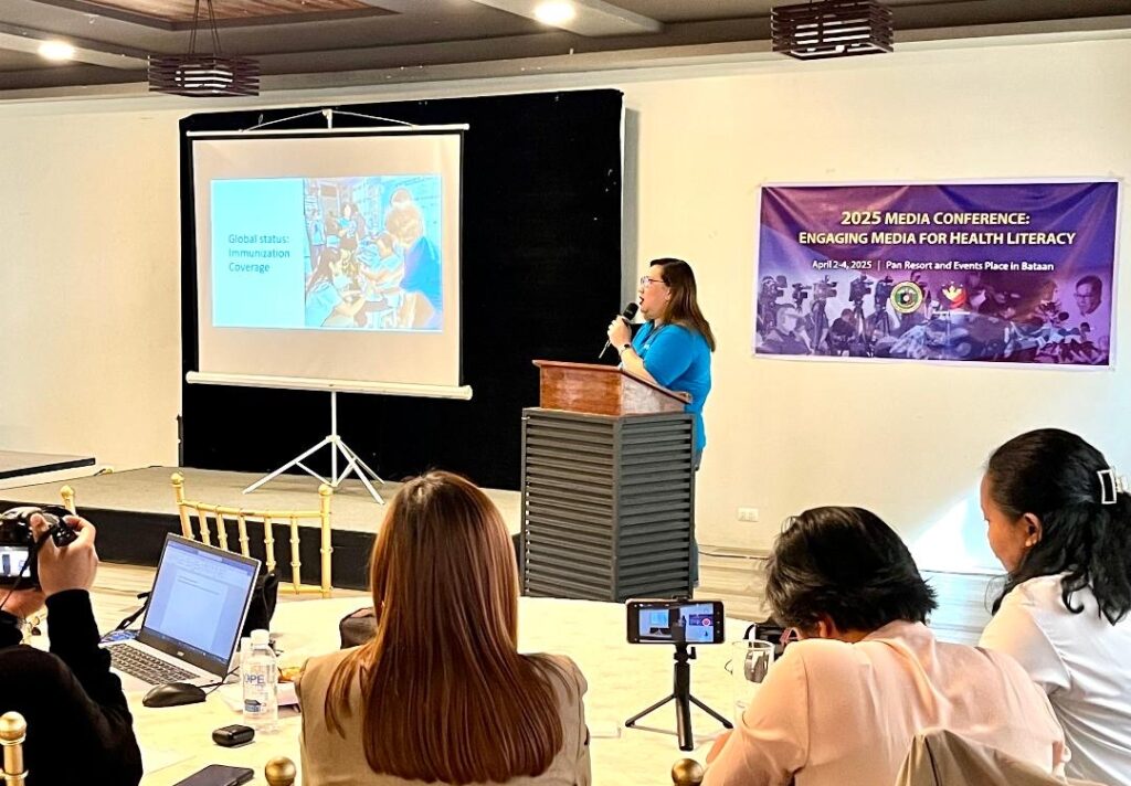 Ipinaliwanag ni Dr. Madonna Añabieza ang mga maling paniniwala sa bakuna na may kaugnayan sa immunization program ng gobyerno sa 3-araw na Media Conference: Engaging Media for Health Literacy on immunization, rabies and cancer awareness na inorganisa ng Department of Health (DOH) Central Luzon na ginanap sa Pan Resort sa Abucay, Bataan, Abril 2-4, 2025. Larawan ni ELOISA SILVERIO