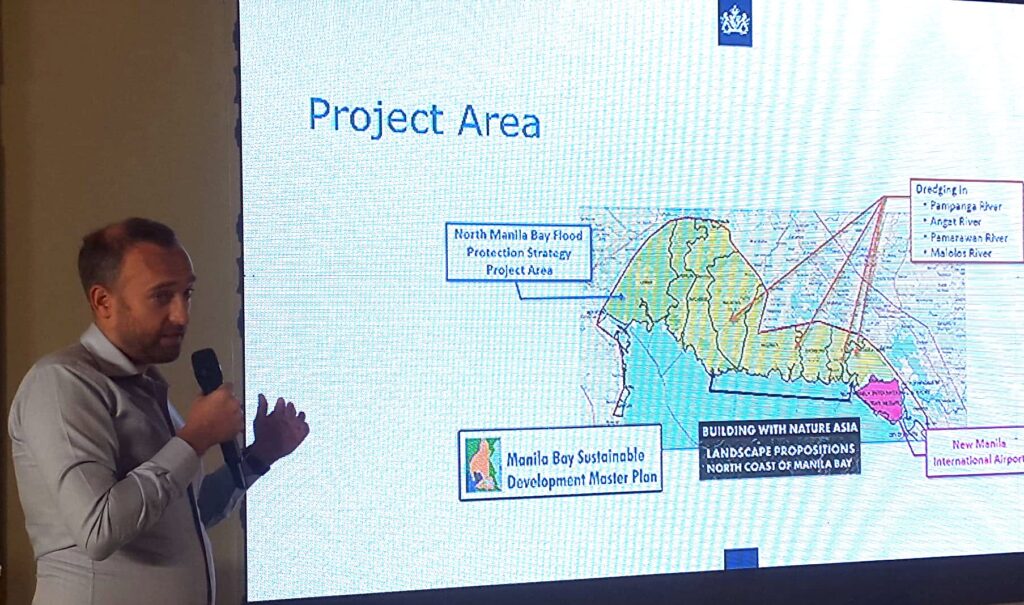 Ipinapaliwanag ni Matthijs Zijlmans, project manager ng Partners for Water ng The Netherlands Enterprise Agency sa ilalim ng Dutch Ministry of Economic Affairs and Climate Policy, isang Nature-Based approach ang dapat na maging solusyon sa mga pagbaha sa baybaying mga bayan at lungsod sa Bulacan at Pampanga. Ito’y upang mabalanse ang aspetong biyolohikal ng tubig at mga nabubuhay dito. (Shane F. Velasco)