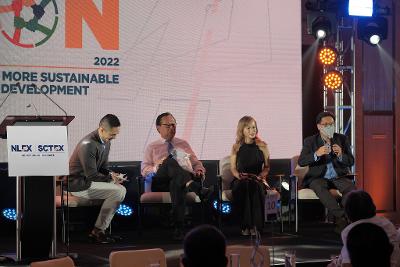 The first set of NLEX Transport Con speakers share their insights during the panel discussion.