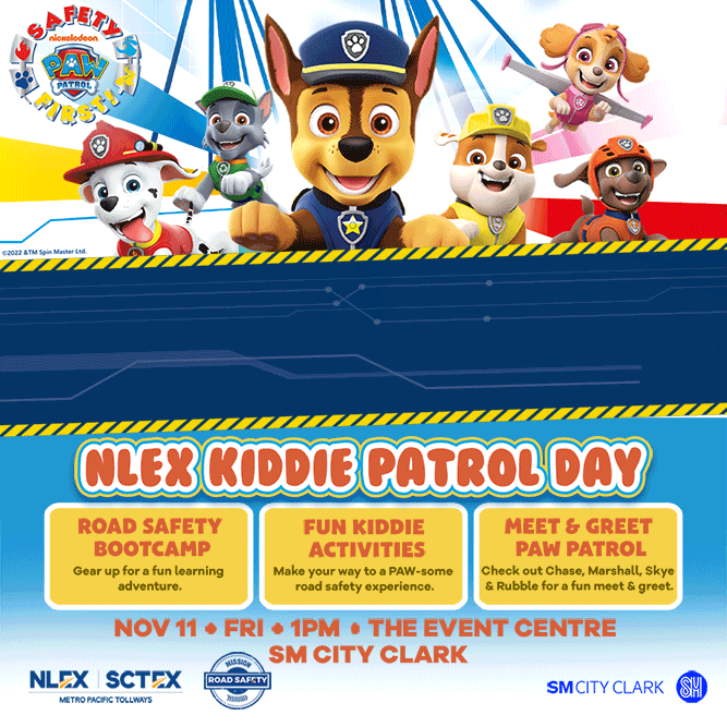 To further drive home the message, NLEX will have a kiddie boot camp happening on November 11, 1:00 p.m., at SM City Clark. Dubbed as the NLEX Kiddie Patrol Day, the event will feature exciting activities for kids such as road sign making, coloring activity, driving simulation game, as well as a road safety workshop. Participants will also have the chance to be given a safety badge and an opportunity to meet PAW Patrol’s Chase, Marshall, Skye, and Rubble costumed characters in a meet and greet session.