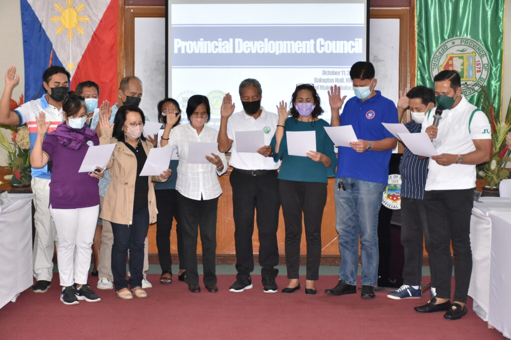 Bulacan Governor Daniel R. Fernando leads the oath-taking of the new representatives of the Civil Society Organizations (CSO) in the province held during the PDC Full Council Meeting together with the Provincial Planning and Development Office, City/Municipal Mayors and other agencies at the Balagtas Hall, Hiyas ng Bulacan Convention Center, City of Malolos, Bulacan recently.