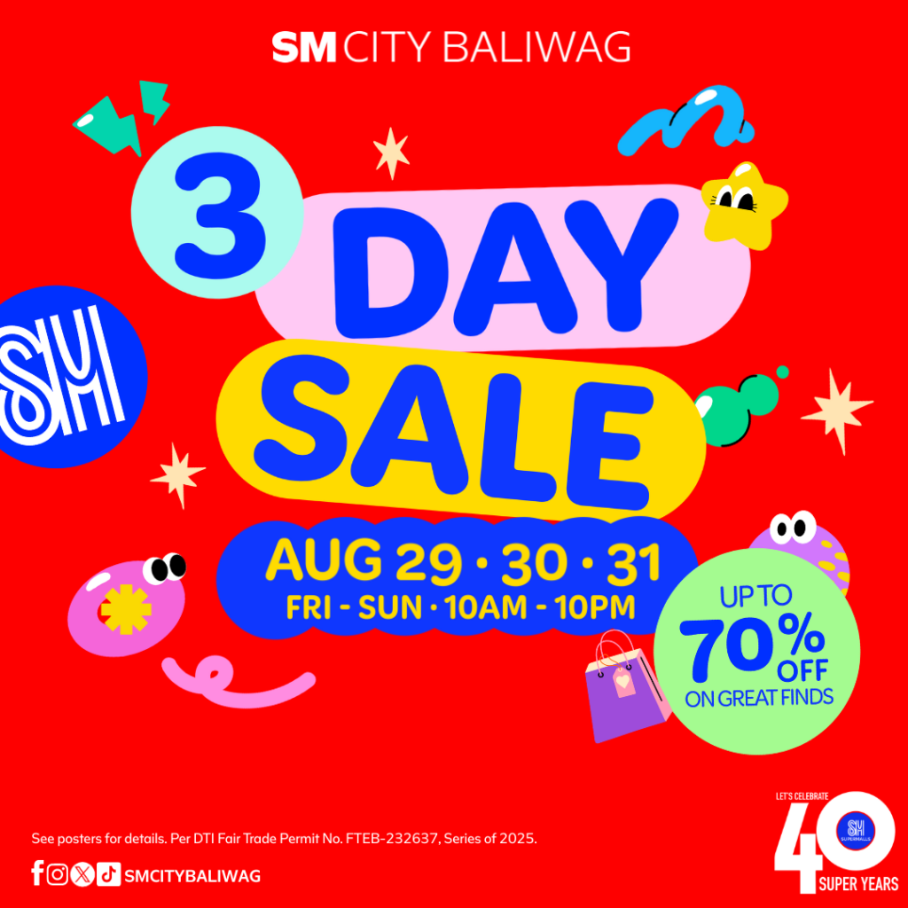 Whether you plan to revamp your style, upgrade your home, or finally add some stuff to your collection, SM City Baliwag’s 3-Day Sale is your ticket to big savings and exciting surprises.