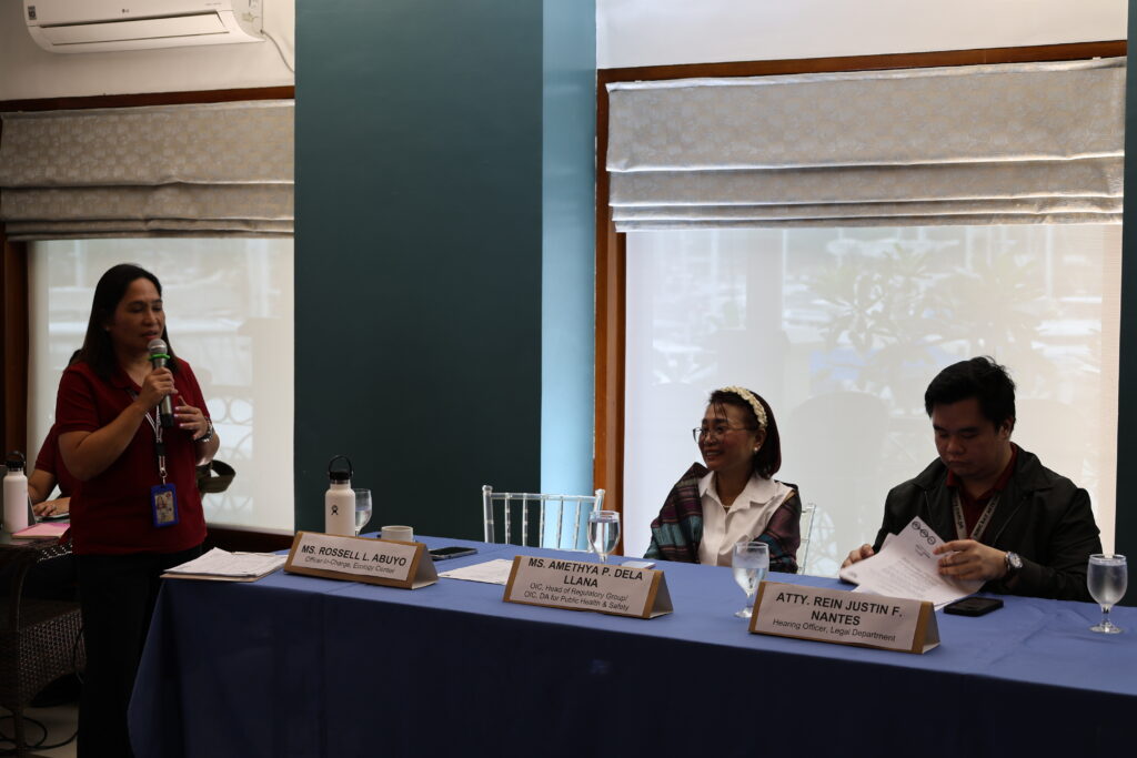 Amethya P. Dela Llana (center), SBMA OIC Senior Deputy Administrator for Regulatory and OIC Deputy Administrator for Public Health and Safety, and Atty. Rein Justin F. Nantes (right), Hearing Officer of the SBMA Legal Department, join the panel during the public hearing on the Admission of Non-Hazardous Materials inside the Subic Bay Freeport Zone.
