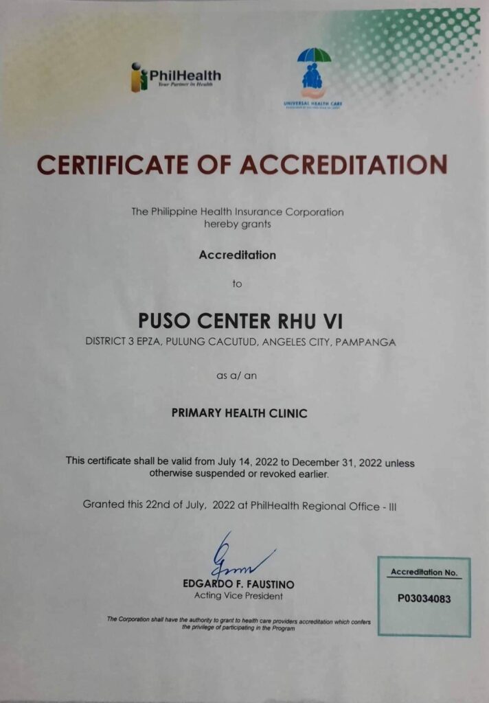 ANGELES CITY — The Puso Center Rural Health Unit VI in Barangay Pulung Cacutud here is now accredited as a ‘Primary Health Clinic’ by the Philippine Health Insurance Corporation (PhilHealth), expanding its free and accessible services to Angeleños.