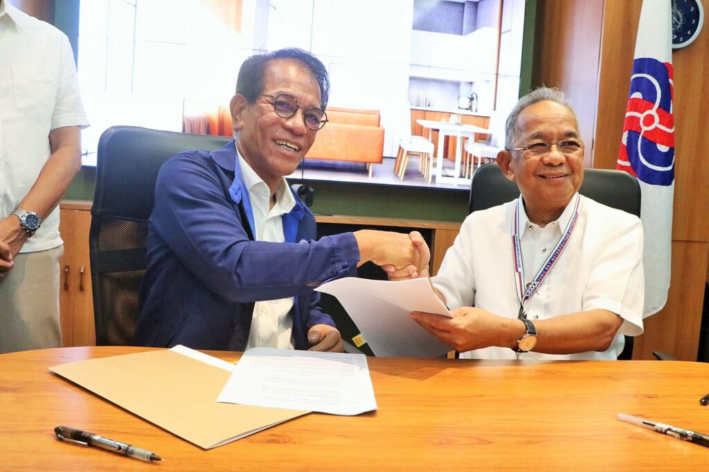 Subic Bay Metropolitan Authority (SBMA) Chairman and Administrator Eduardo Jose L. Aliño and Department of Human Settlements and Urban Development (DHSUD) Secretary Jose Rizalino Acuzar seal the deal with a handshake after signing yesterday the Memorandum of Understanding (MOU) for the establishment of employee housing in the Subic Bay Freeport Zone.