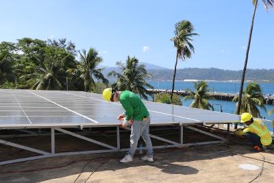 Workers install Grid-Tied system on the building roofs of several Subic Bay Metropolitan Authority (SBMA) offices. The solar power system (SPS), which was completed in 2022, has already saved the agency ₱2.96-million in power consumption in 2023 by turning to renewable energy sources.