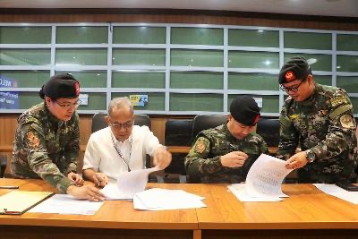 After the signing, Pespes conducted a command visit to the 85th Special Action Company, Rapid Deployment Battalion at Building 8131, Old Fly Fast Hangar of the Subic Bay International Airport.