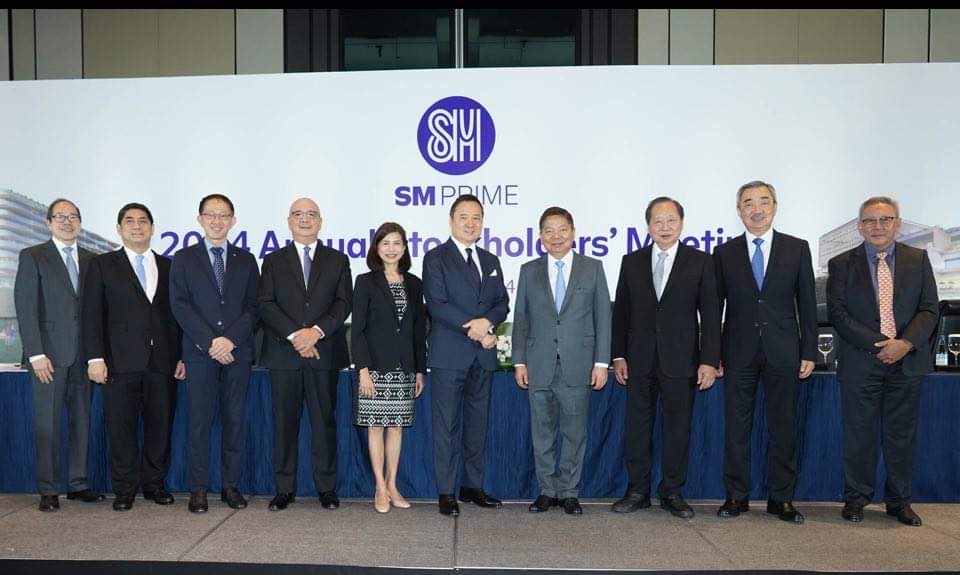 SM Prime’s (L-R): Assistant Corporate Secretary Arthur Sy, Corporate Secretary Atty. Elmer Serrano, Chief Finance Officer and Chief Compliance Officer John Nai Peng Ong, President Jeffrey Lim, Independent Director Atty.  Darlene Marie Berberabe, Chairman of the Board Henry Sy Jr., Vice Chairman and Lead Independent Director Amando Tetangco Jr., Non-Executive Director Herbert Sy, Chairman of the Executive Committee Hans Sy, and Non-Executive Director Jorge Mendiola