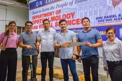 HAWAK ni Gobernador Daniel R. Fernando kasama sina (mula kaliwa) Bokal Romina Fermin at Cezar Mendoza, Bise Gob. Alexis C. Castro, Bokal Raul Mariano at Provincial Health Officer II Dr. Hjordis Marushka Celis ang kagamitan na sumisimbolo sa Isinagawang groundbreaking kamakailan ng gusali Department of Ophthalmology and Visual Sciences sa loob ng Bulacan Medical Center sa Lungsod ng Malolos, Bulacan.