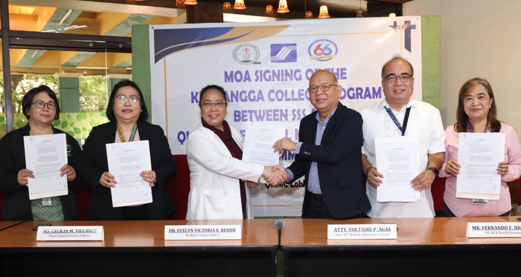 Other signatories to the MOA are SSS Vice President for National Capital Region (NCR) North Division Fernando F. Nicolas, SSS Cubao Branch Head Edna Q. Aldea, QMMC Financial and Management Officer Melanie H. Lomotan, and QMMC Chief Administrative Officer Cecilia M. Villamin.