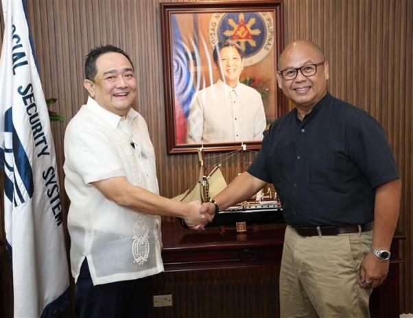 Social Security System (SSS) President and Chief Executive Officer Robert Joseph Montes De Claro welcomed UnionDigital Bank President and CEO Danilo “Bong” J. Mojica II during a courtesy visit to SSS Main Office last 30 May 2025 to discuss partnership opportunities.
