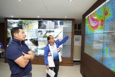STAYING VIGILANT. Bulacan Governor Daniel R. Fernando alongside Provincial Disaster Risk Reduction Management Officer Manuel L. Lukban closely track the progression of Tropical Storm Kristine while monitoring the status of the province’s major rivers at the Command, Control, and Communications Center (C4) of the PDRRMO, City of Malolos, Bulacan on Thursday, October 24.