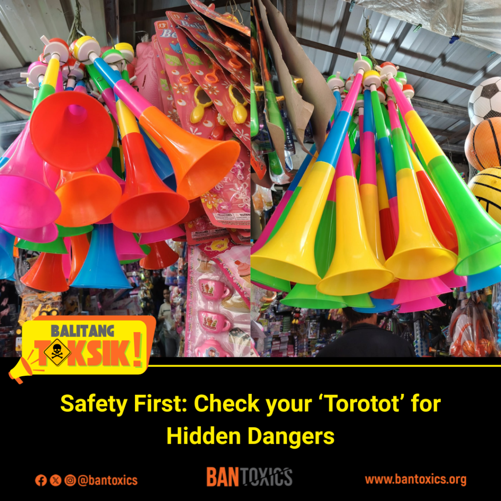 “Let us be mindful and practice safety first when buying and using torotot or similar plastic noisemakers for our children,” said Thony Dizon, Advocacy and Campaign Officer of BAN Toxics. “Parental supervision and guidance are important to ensure their health and safety.”
