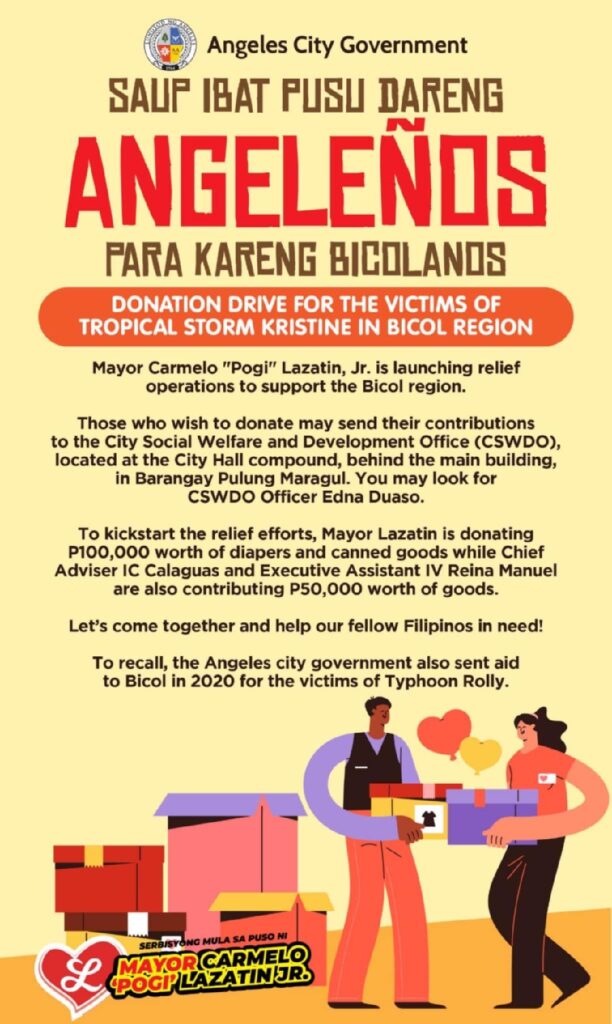 To recall, the Angeles city government also sent aid to Bicol in 2020 for the victims of Typhoon Rolly.