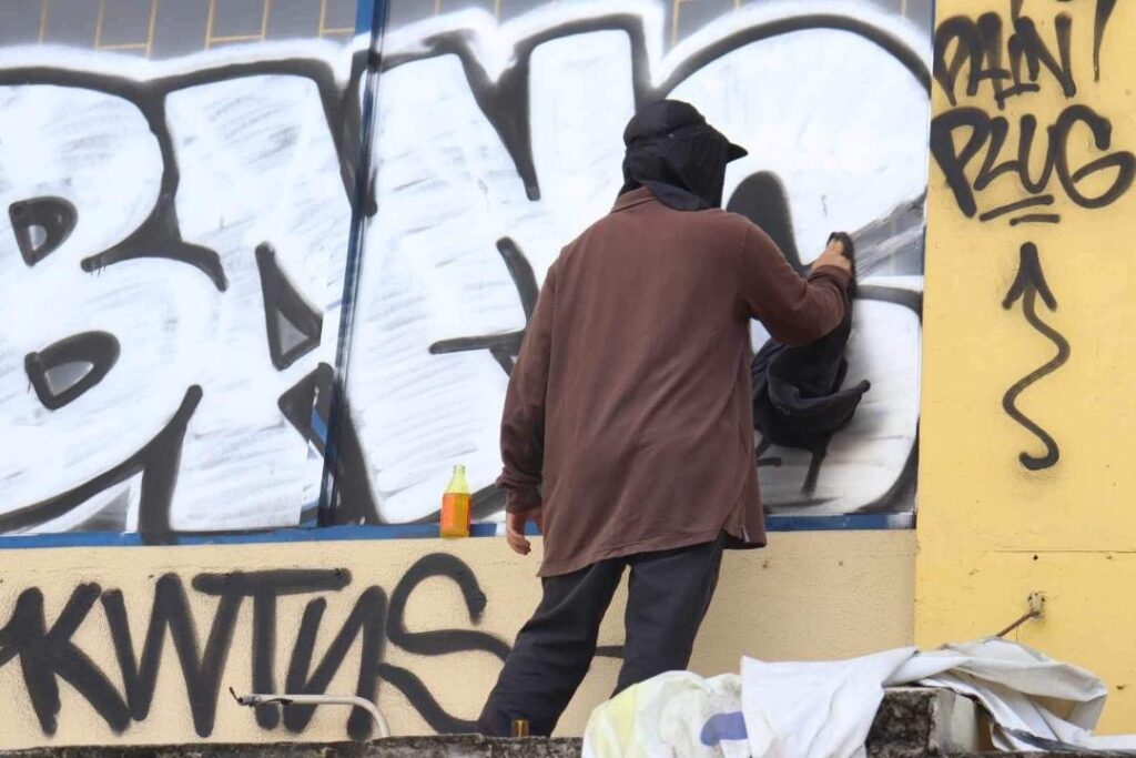 Perpetrators of the vandalized walkway in the Heritage District in Barangay Sto. Rosario started to clean up the paint they used in their “work” on August 21, 2024.