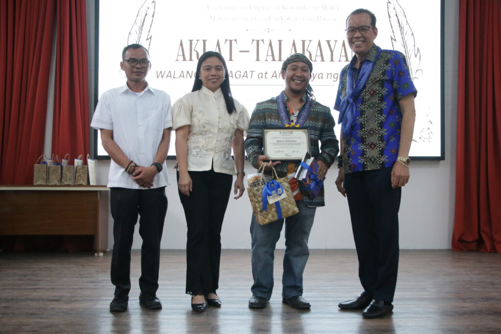Brian M. Manansala holds his certificate and tokens of appreciation from Provincial History, Arts, Culture, and Tourism Office OIC-Head May Arlene DG. Torres, (left) Bulacan Provincial Library Librarian Marlon A. Hipolito and (right) Governor Daniel R. Fernando’s representative Crispin de Luna after discussing the “Walang Pamagat” and “Anatomya ng Baybayin” books during the BPL Aklat-Talakayan held at Guiguinto Central School in Guiguinto, Bulacan last Monday.